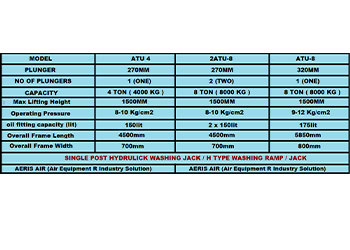 Washing Lift - 4ton Our company designs and manufactures superior quality Hydraulic Lifts, which are robust and light in weight. The Hydraulic Lifts function when the downward motion of the plunger assembly causes displacement of oil through the metering tube holes and decelerate the impacting mass. The measure of the lift's high performance depends on the displacement of oil and that of the buffer depends on the size and distribution of these holes. The gas spring ensures the re-extending of the plunger and the frictional forces check whether this re-extending of the plunger has been achieved. Washing Lift - 8ton We are engaged in manufacturing and supplying Hydraulic Servicing Jack. Hydraulic Servicing Jack has the capacity to handle all types of vehicles including Cars, Jeeps, Vans, LCVs and Heavy Trucks and Buses. The products we offer are manufactured using quality tested raw material under the guidance of our reliable engineers. Hoists can be custom built to suit consumer. Plungers are made of high grade steel, ground to close tolerance and hard chrome plated for high wear resistance and excellent surface finish.